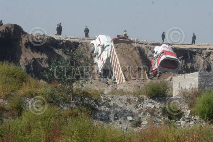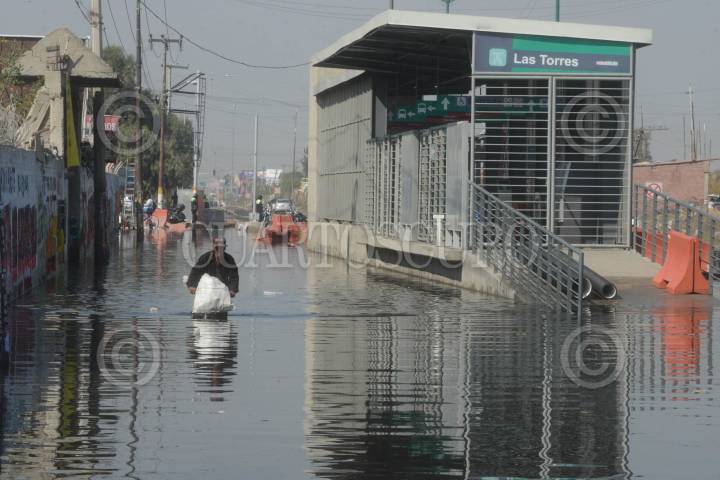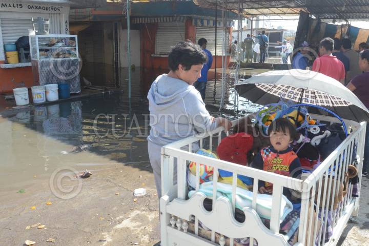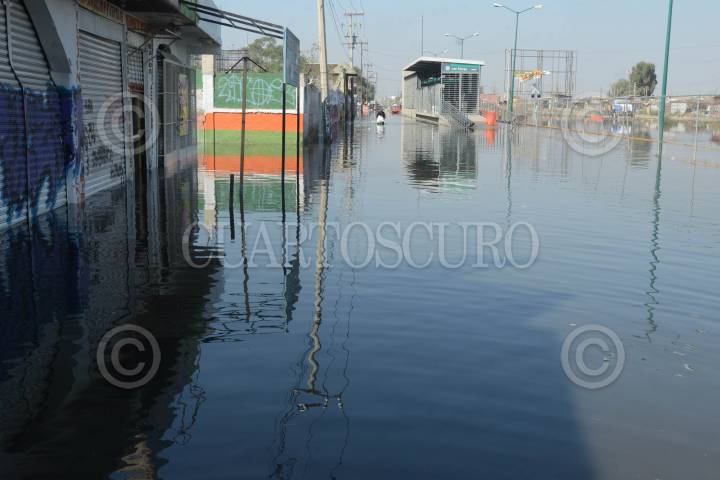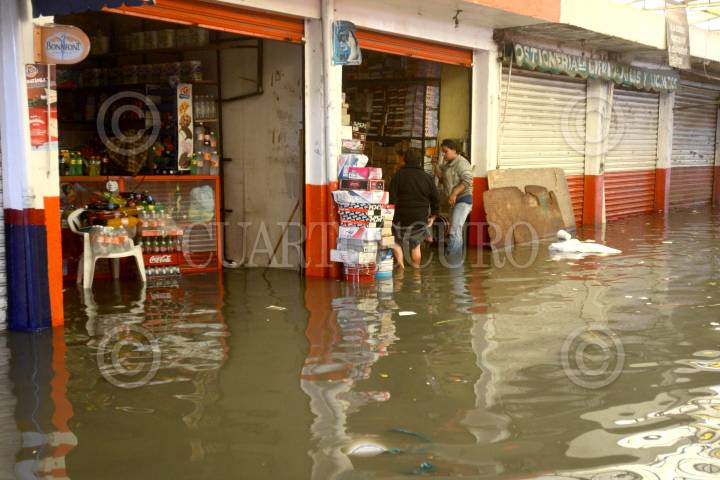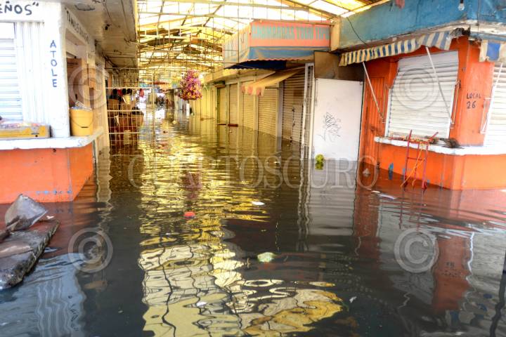 NEZAHUALCÓYOTL, ESTADO DE MÉXICO; 05DICIEMBRE2013.- El mercado ubicado en Bordo de Xochiaca y Carmelo Pérez, se inundo a causa del desbordamiento del canal Rio de Los Remedios, por el exceso de basura que se arroja a este lugar por vecinos de este municipio. Camiones intentaron tapar la fractura por la que emanaba el agua quedando atrapados al hundirse el suelo por el reblandecimiento FOTO; LUIS CARBAYO /CUARTOSCURO.COM