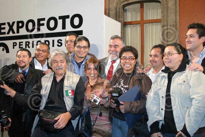 MEXICO, D.F., 13ENERO2006.- Un grupo de fotoperiodistas se toma la foto del recuerdo con el Jefe de Gobierno Alejandro Encinas, después de la inauguración de la Expofoto Periodismo 2006 en el Museo de la Ciudad de México. FOTO: Moisés Pablo/CUARTOSCURO.COM