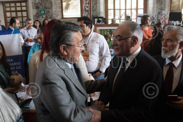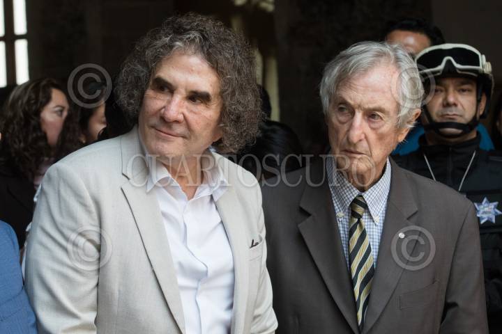 CIUDAD DE MÉXICO, 10JULIO2019.- Jorge Pesqueira Leal, presidente del Patronato de Preliberación Social de Sonora y Experto en Justicia Restaurativa y Mediación, y Elías Carranza, experto en derechos Humanos y Sistemas Penitenciarios, al finalizar la presentación del "Día Internacional de Nelson Mandela", en la Biblioteca de México. FOTO: MOISÉS PABLO /CUARTOSCURO.COM