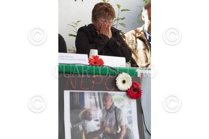 MÉXICO, D.F., 29NOVIEMBRE2011.- Araceli Rodríguez, integrante del Movimiento por la Paz con Justicia y Dignidad, se lamenta la muerte de Nepomunceno Moreno, asesinado el día de ayer en Hermoisllo, Sonora. "Nepo" como lo conocían los miembros de la señalada organización se integró a este movimiento por que buscaba a su hijo quien desapareció hace un año al parecer fue secuestrado por policías estatales. Varios activistas ofrecieron una conferencia de prensa para hablar sobre este hecho violento e hicieron un llamado por que no se criminalize la imagen de este luchador. La procuraduría sonorense ha señalado que una de las líneas de investigación es alguna posible relación con el crimen organizado. FOTO: MOISÉS PABLO/CUARTOSCURO.COM