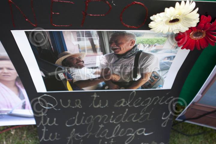 MONTE ALBÁN, OAXACA, 29NOVIEMBRE2011.- Nepomuceno Moreno Núñez, activista de 56 años asesinado en Sonora cuando circulaba en un vehículo, un pick up Chevrolet azul. El activista recibió por lo menos 7 impactos de bala. Moreno Núñez exigía el esclarecimiento del secuesto de su hijo Jorge Mario Moreno León, por presuntos criminales en ciudad Obregón. En la gráfica al lado del poeta Javier Sicilia durante la Caravana al Sur en Monte Albán, en la ciudad de Oaxaca. FOTO: ARCHIVO/ARTURO PÉREZ ALFONSO/CUARTOSCURO.COM