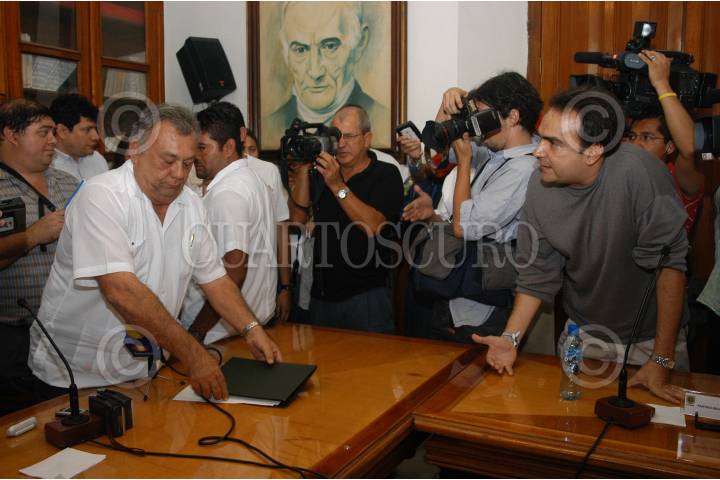 MÉRIDA YUCATÁN 19MAYO2007.-El secretario de gobierno Pedro Rivas Gutierrez al retirarse de la reunión que sustuvo con los respresentantes de los diversos partidos, esto al mencionar que no existian las garantias para continuarla, en la imagen reclama Nerio Torres representante local del PRI por su retirada. FOTO: GUILLERMO PEREA/CUARTOSCURO.COM