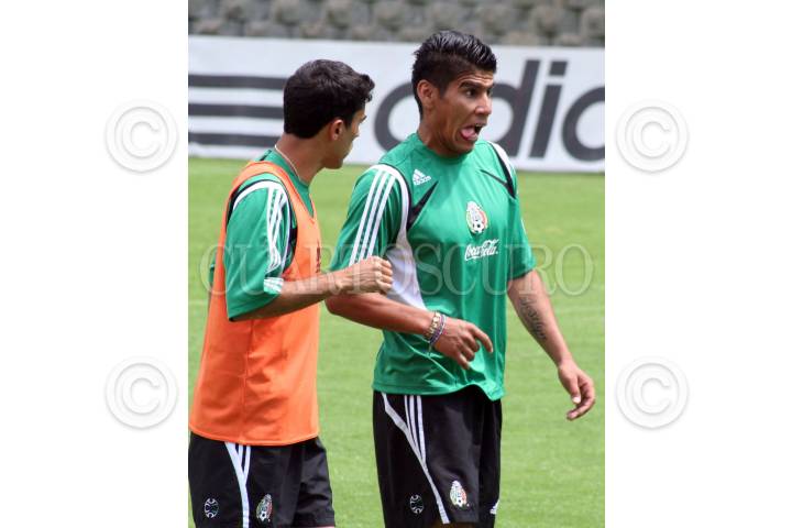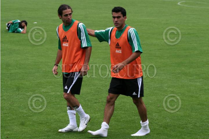 MÉXICO, D.F., 29MAYO2009.- Nery Castillo (primer plano) y Javier "El Maza" Rodríguez (senudo plano), durante el entrenamiento de la Selección Nacional, en el Centro de Alto Rendimiento previo a su encuentro el próximo 6 de junio ante El Salvador. FOTO: RODOLFO ANGULO/CUARTOSCURO.COM