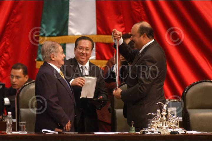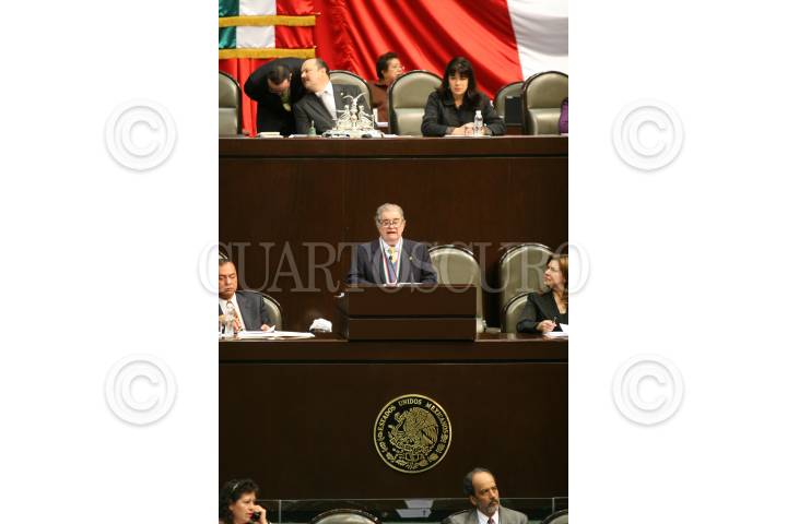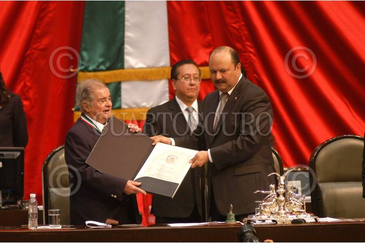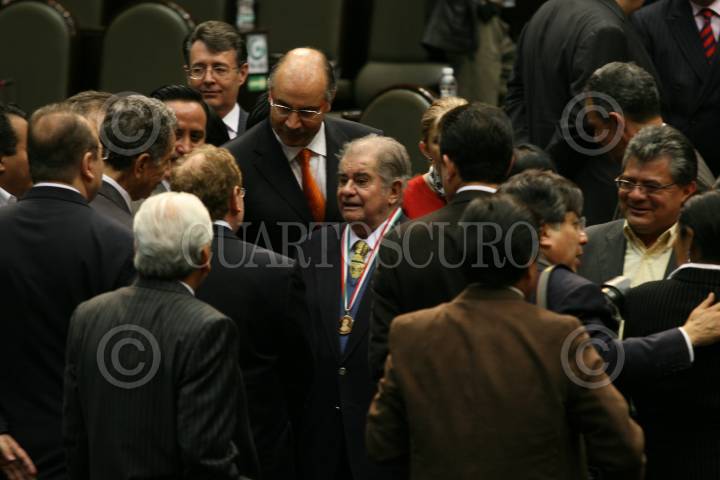 MÉXICO D.F., 09OCTUBRE2008.- En ceremonia solemne se realizo la entrega de la Medalla al Merito Cívico Eduardo Nery a Miguel León Portilla en la Cámara de Diputados . FOTO: GUILLERMO PEREA/CUARTOSCURO.COM
