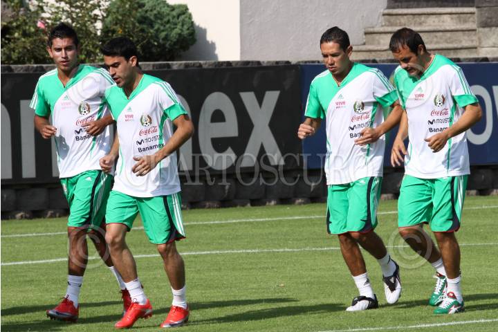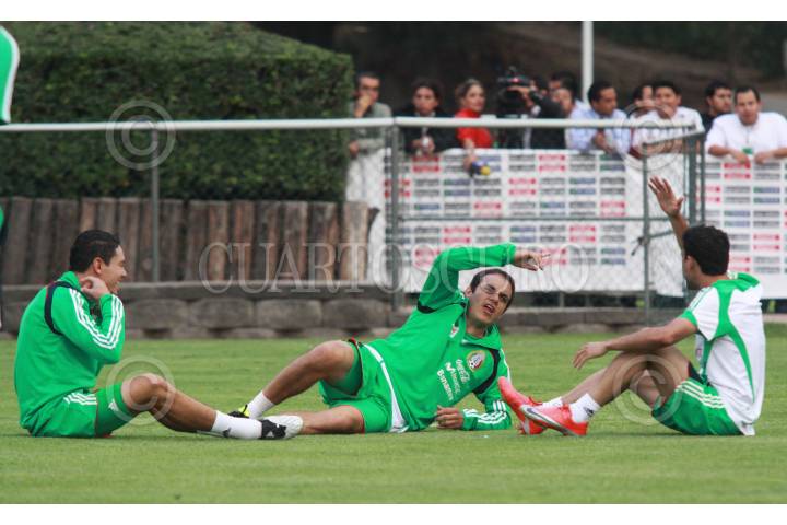 MÉXICO, D.F., 29MAYO2009.- Alberto Medina, Nery Castillo, Oscar Rojas y Cuauhtemoc Blanco, integrantes de la Selección Nacional de Futbol, durante el entrenamiento en el Centro de Alto Rendimiento previo a su encuentro el próximo 6 de junio ante El Salvador. FOTO: RODOLFO ANGULO/CUARTOSCURO.COM