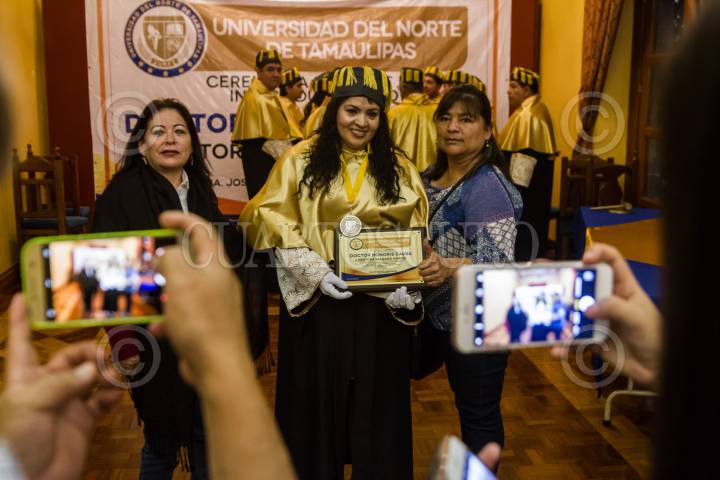 CIUDAD DE MÉXICO, 12MARZO2018.- Nestora Salgado García, activista mexicana y ex líder del movimiento de autodefensa en Olinalá Guerrero, fue investida con el Doctorado Honoris causa por parte de la Universidad del Norte de Tamaulipas. La candidata al Senado de la República por el partido Morena, acudió a la pequeña ceremonia que se llevó acabo en la Casa de Cultura de Tamaulipas. FOTO: CRISÓFORO GIMÉNEZ /CUARTOSCURO.COM