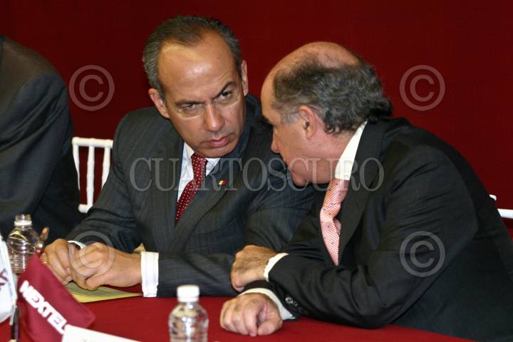 MÉXICO, D.F., 04JULIO2008.- El presidente Felipe Calderón y el secretario de comunicaciones Luis Tellez durante la inauguración de las oficinas corporativas de Nextel en conmemoración de su décimo aniversario en la Torre Arcos II en Bosques de las Lomas. FOTO: RODOLFO ANGULO/CUARTOSCURO.COM