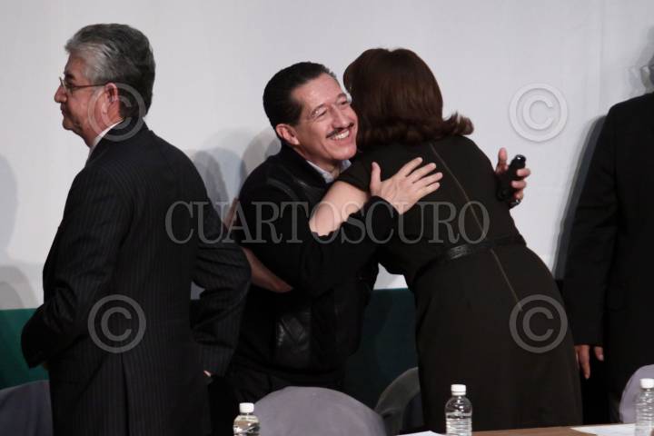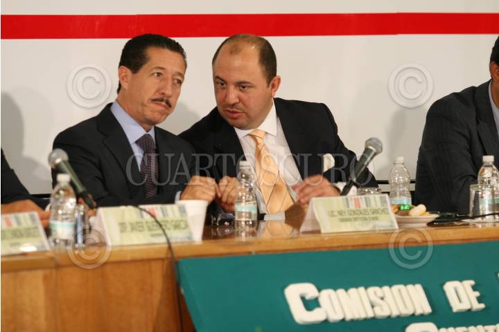 MÉXICO, D.F, 08ENERO2011.- Ney Gonzalez, gobernador del estado de Nayarit durante la entrega de la constancia de mayoria a Humberto Moreira, gobernador con licencia de Coahuila y la diputada federal Cristina Díaz luego de que la Comisión Nacional de Procesos Internos declaró como válida y legítima su candidatura a la dirigencia nacional del Comité Ejecutivo Nacional del Partido Revolucionario Institucional (PRI). FOTO: RODOLFO ANGULO/CUARTOSCURO.COM