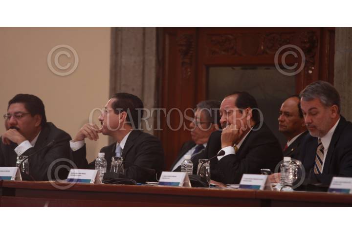 MÉXICO, D.F., 02 JUNIO2009.- Los Gobernadores Ulises Ruiz de Oaxaca , Ney González Gobernador de Nayarit, Leonel Godoy Gobernador de Michoacan, Emilio Márquez Gobernador de Jalisco durante la XXVI sesión del Consejo Nacional de Seguridad Pública en Palacio Nacional FOTO: SÁSHENKA GUTIÉRREZ/CUARTOSCURO.COM