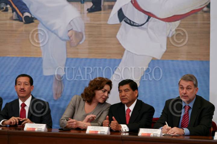 MÉXICO D.F. 25MAYO2007.- Se realizo una conferencia para dar a conocer el festival internacional "Amado Nervo"; en el evento estuvieron presentes: Ney González, gobernador de Nayarit y su esposa, Rene Cervera, en representación del gobierno capitalino, Alejandra Barrales, secretaría de turismo; al termino del evento, se firmo un convenio entre los dos estados. FOTO: GUILLERMO MARTÍNEZ/CUARTOSCURO.COM