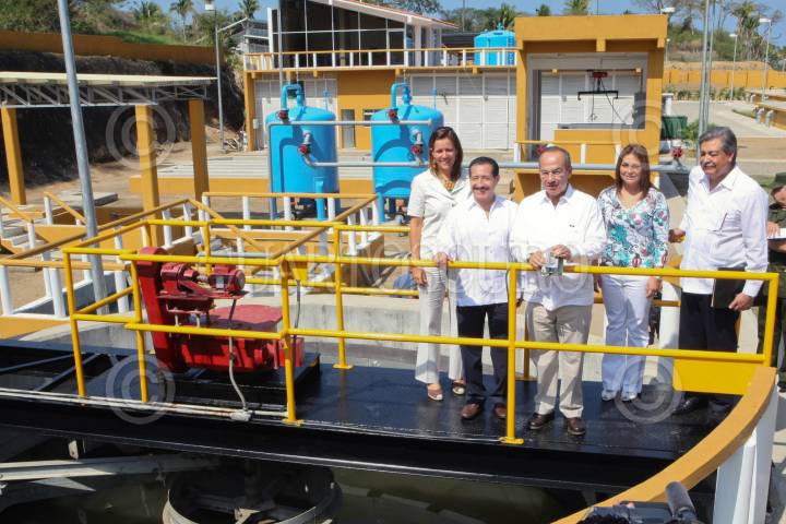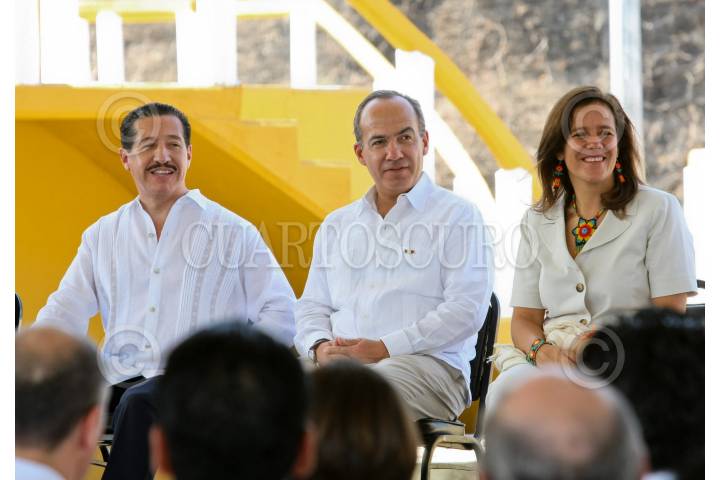 BAHIA DE BANDERAS, NAYARIT, 28FEBRERO2010.- Ney González Sánchez, Gobernador del Estado de Nayarit, acompañado de Felipe Calderón, Presidente de México y su esposa Margarita Zavala durante la inauguración de la planta de tratamiento y desalinizacion del polígono Litibu. FOTO: FRANCISCO SANTOS/CUARTOSCURO.COM