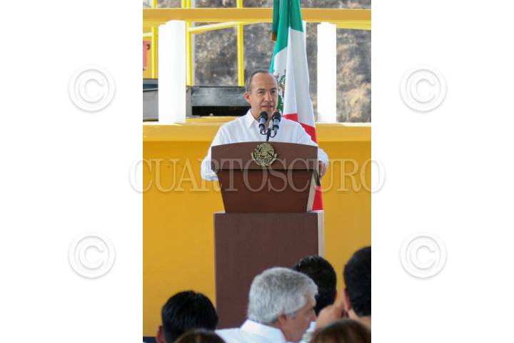 BAHIA DE BANDERAS, NAYARIT, 28FEBRERO2010.- Felipe Calderon, Presidente de México durante la inauguración de la planta de tratamiento y desalinizacion del poligono Litibu. FOTO: FRANCISCO SANTOS/CUARTOSCURO.COM
