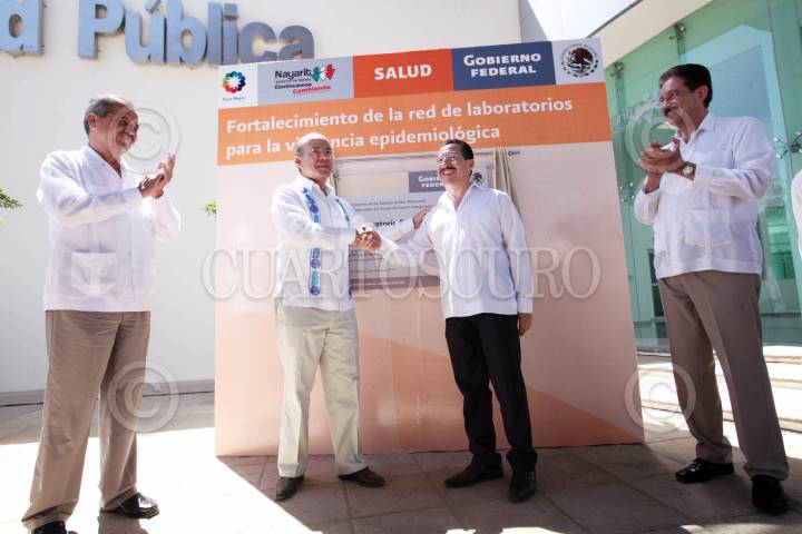 TEPIC, NAYARIT, 26ABRIL2011.- El presidente Felipe Calderón acompañado Ney Gonzalez, gobernador del estado y de José Ángel Cordova Villalobos, secretario de salud, durante la inauguración del Laboratorio Estatal de Salud Pública. FOTO: CUARTOSCURO.COM