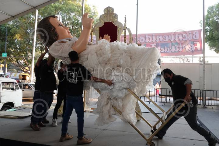 Previo a la celebración del Día de la Candelaria, integrantes del Taller Morphix Group, cargaron el Niño Dios más grande a un remolque para instalarlo en la Macroplaza de la alcaldía Iztapalapa
