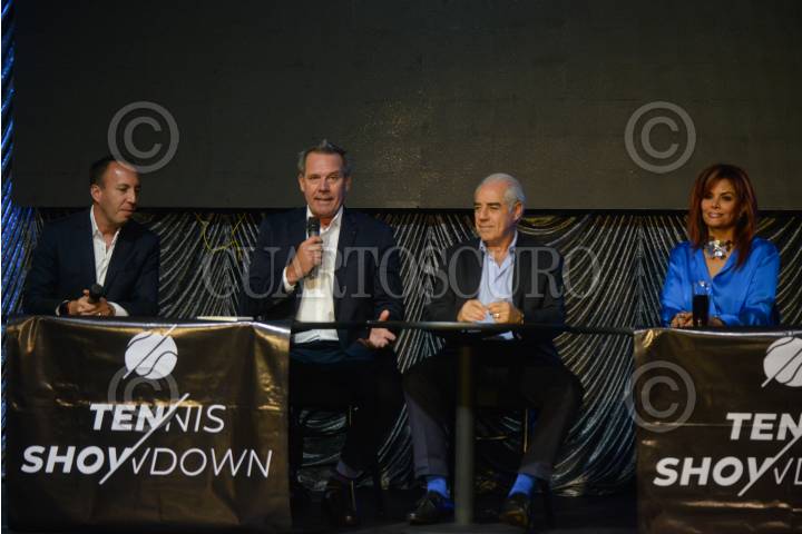 Eduardo Rodríguez, director general de Tennis Showdown; Nicolás Pereira, extenista y periodista deportivo; José Escalante, presiente del Comité Organizador de Tennis Showdown, y Diana Vanoni, cantante mexicana, encabezaron la presentación del "Tennis Showdown" el cual tendrá el encuentro entre los tenistas internacionales Gael Monfils y Nick Kyrgios el próximo 9 de noviembre en la Arena Ciudad de México.