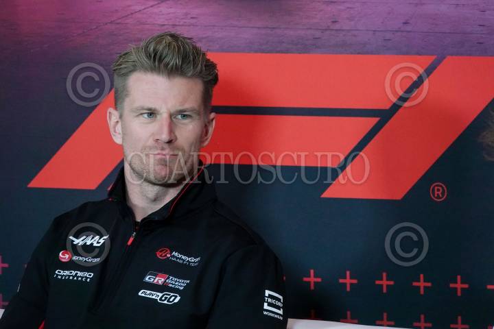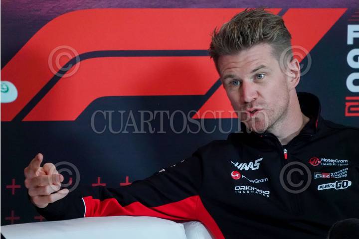 CIUDAD DE MÉXICO, 24OCTUBRE2024.- El piloto de la escudería MoneyGram Haas Nico Hulkenberg durante la conferencia de pilotos en el marco del primer día de actividad del Gran Premio de la Ciudad de México que se celebra en el Autódromo Hermanos Rodríguez. FOTO: GALO CAÑAS/CUARTOSCURO.COM