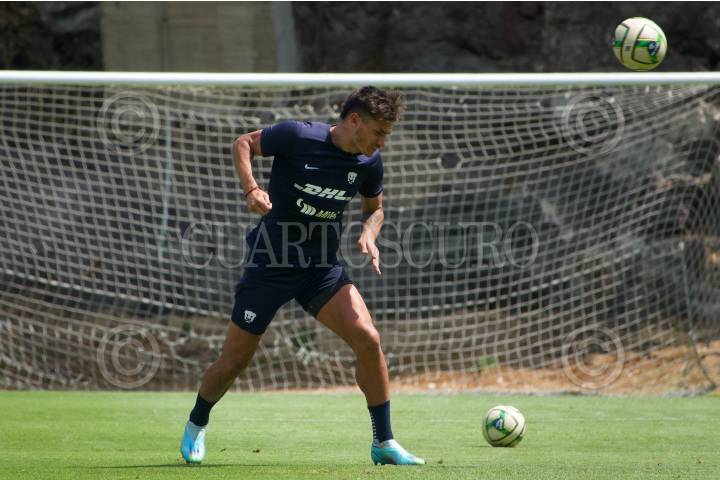 Juan Dinenno, durante el entrenamiento del equipo Pumas en cantera.