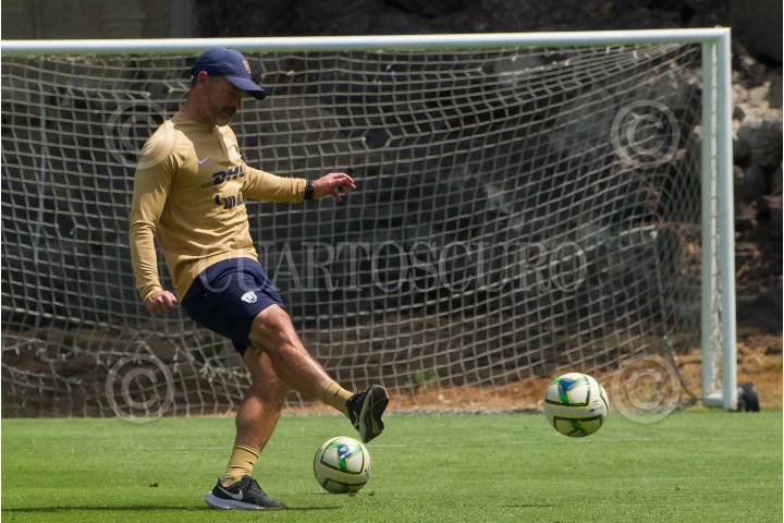 Rafa Puente, durante el entrenamiento del equipo Pumas en cantera.