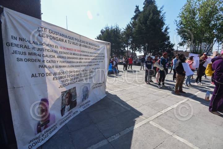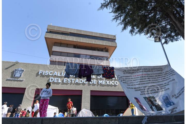 Cinco días ha cumplido el plantón instalado en la Fiscalía General de Justicia del Estado de México por parte de vecinos de Nicolás Romero quienes exigen justicia para Karina Soto y sus hijos quienes fueron torturados por presuntos policías de investigación en el 2020.