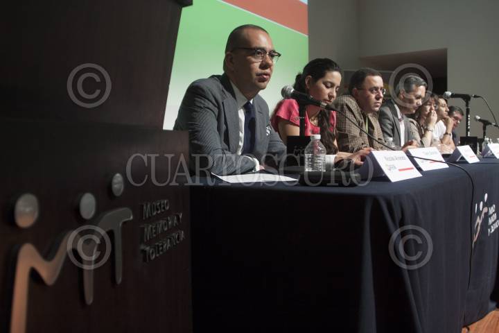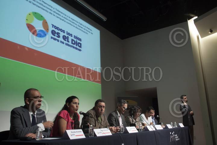 MÉXICO, D.F., 19OCTUBRE2012.- Nicólas Alvarado, Tiare Scanda, Jacobo Dayán, y Ricardo Bucio Mújica, entre otros, encabezaron la presentación de la campaña "Todos los días es el día para no discriminar" que se realizó en el Museo Memoria y Tolerancia. FOTO: MOISÉS PABLO /CUARTOSCURO.COM
