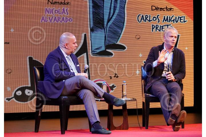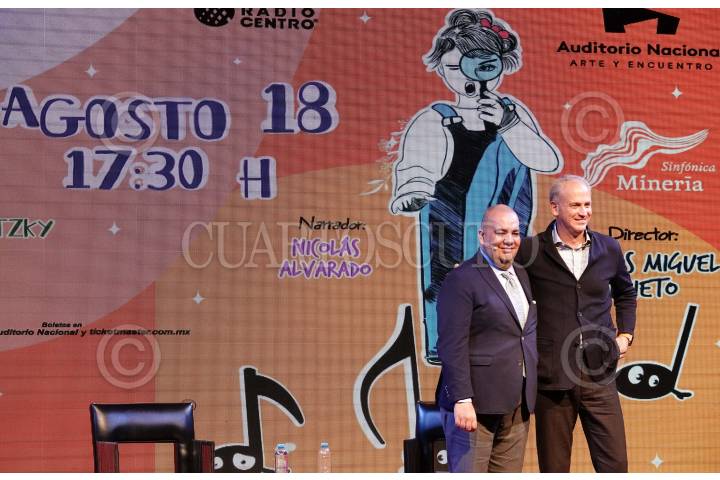 CIUDAD DE MÉXICO, 23JULIO2024.- El escritor y promotor cultural Nicolás Alvarado y el actual director titular de la Orquesta Sinfónica de Minería de la UNAM, Carlos Miguel Prieto, encabezaron la conferencia de prensa en que anunciaron la llegada del Allegro Sinfónico para Niños al Auditorio Nacional el próximo 18 de agosto. La función busca llevar el poder de la música sinfónica al público infantil de forma divertida y dinámica a través de cuatro obras: El compositor está muerto de Nathaniel Stookey, La Pantera Rosa de Henry Mancini, Bolero de Maurice Ravel y la Marcha Radetzky de Johann Strauss. FOTO: GALO CAÑAS/CUARTOSCURO.COM