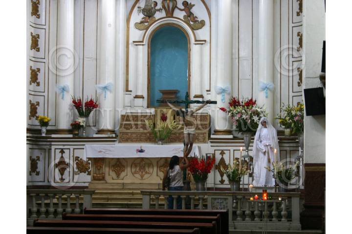 OAXACA, OAXACA 05AGOSTO2008.-La virgen y la iglesia de las nieves, festejo hoy su día con una presencia mínima, donde es costumbre que en los primeros días del mes se den tres monedas que simbolizan salud dinero y trabajo. Este santo caracterizado por se devoción de personas en años anteriores dio crédito a un sin fin donaciones para su mantenimiento pese a ello arquitectónicamente la iglesia muestra signos de abandono , donde pocos peregrinos acuden. FOTO: MAX NÚÑEZ/CUARTOSCURO.COM