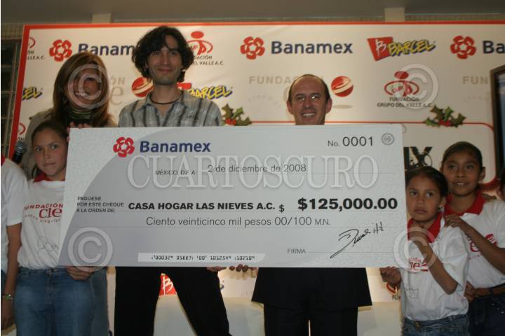 MÉXICO, D.F., 02DICIEMBRE2008.- El cantante Benny Ibarra durante la entrega de un cheque de 125, 000. 00 a la casa hogar las Nieves, niños de escasos recursos. FOTO: ENRIQUE ORDÓÑEZ/CUARTOSCURO.COM