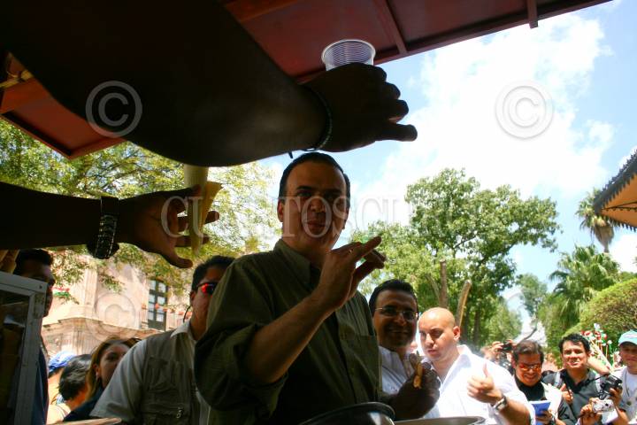 DOLORES, HIDALGO GUANAJUATO 12SEPTIEMBRE2009.- Marcelo Ebrard Jefe de Gobierno del Distrito Federal degusto de las famosas nieves de Dolores. FOTO: SÁSHENKA GUTIERREZ/CUARTOSCURO.COM