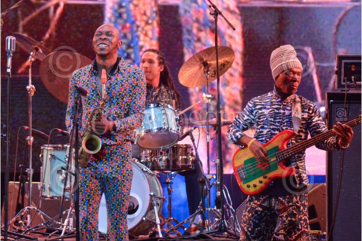 Seun Kuti, cantautor nigeriano e hijo de Fela Kuti (1938-1997) precursor del género afrobeat, ofreció concierto en la Alhóndiga de Granaditas como parte del 50 Festival Internacional Cervantino (FIC).