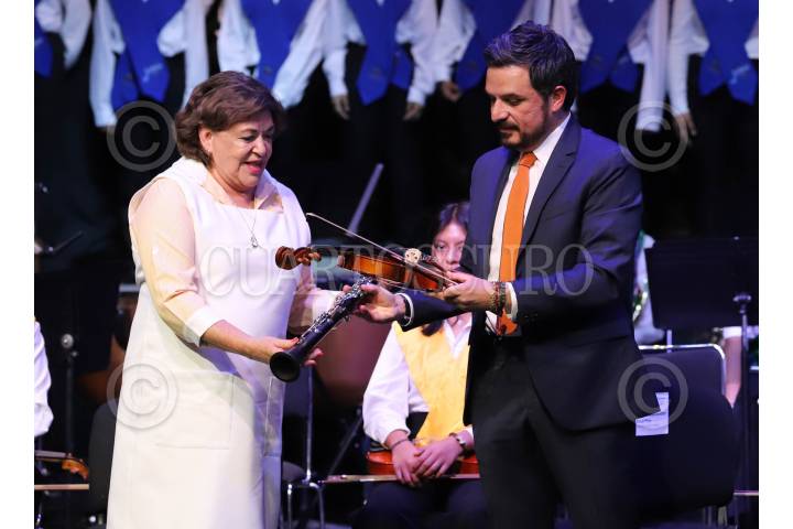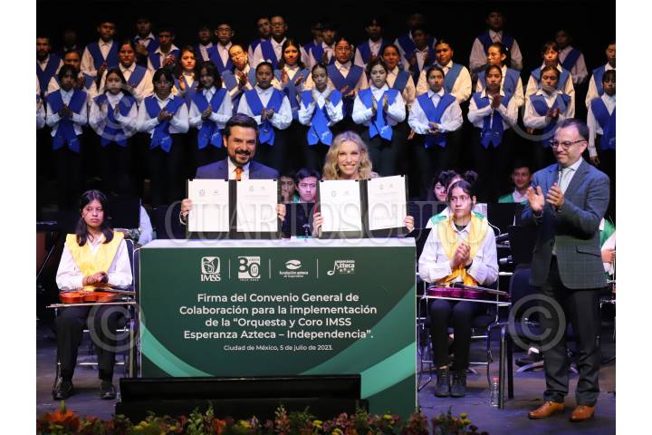 Ninfa Salinas y Zoé Robledo encabezaron la firma del convenio entre el IMSS y Fundación Azteca de Grupo Salinas para la implementación de Orquesta y Coros IMSS Esperanza Azteca.