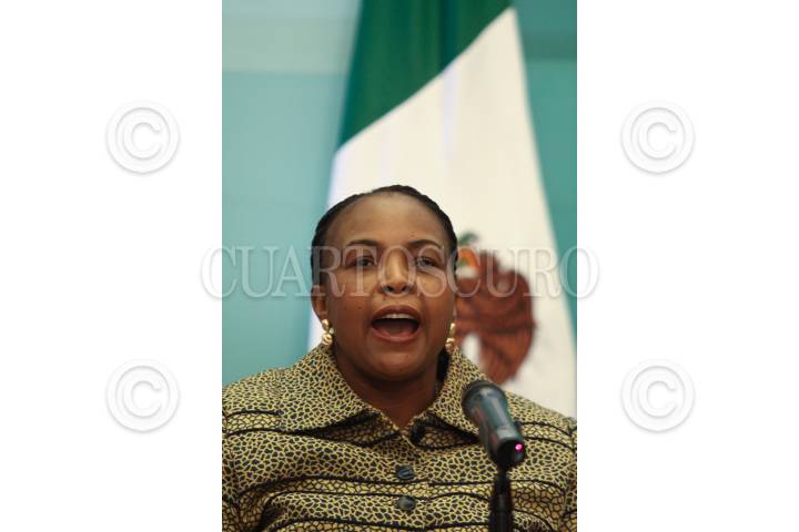 MÉXICO, D.F., 24MARZO2011.- Maite Nkoana-Mashabane, ministra de relaciones internacionales y cooperación de Sudáfrica de la COP17 durante una conferencia de prensa en la Secretaria de Relaciones Exteriores. FOTO: RODOLFO ANGULO/CUARTOSCURO.COM
