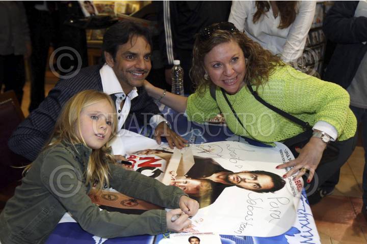 MÉXICO, D.F., 21ENERO2014.- Loreto Peralta y Eugenio Derbez, protagonista de la película No se Aceptan Devoluciones, firmaron autógrafos a sus seguidores en un centro comercial del sur. FOTO: SAÚL LÓPEZ /CUARTOSCURO.COM