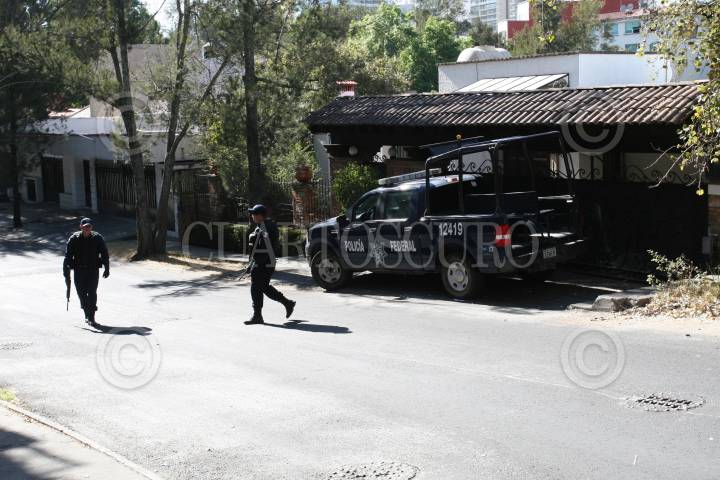 MÉXICO D.F., 19ENERO2011.- Elementos de la Policía Federal, custodian la casa en la que fue detenido Jorge Balderas Garza, alias “ El JJ” junto con seis personas más relacionadas con el crimen organizado, el domicilio se encuentra ubicado en la calle de Pirules No. 21, por la parte frontal y Ahuehuetes 1400, por la parte trasera de la colonia Bosques de las Lomas.3 FOTO: GUILLERMO PEREA/CUARTOSCURO.COM