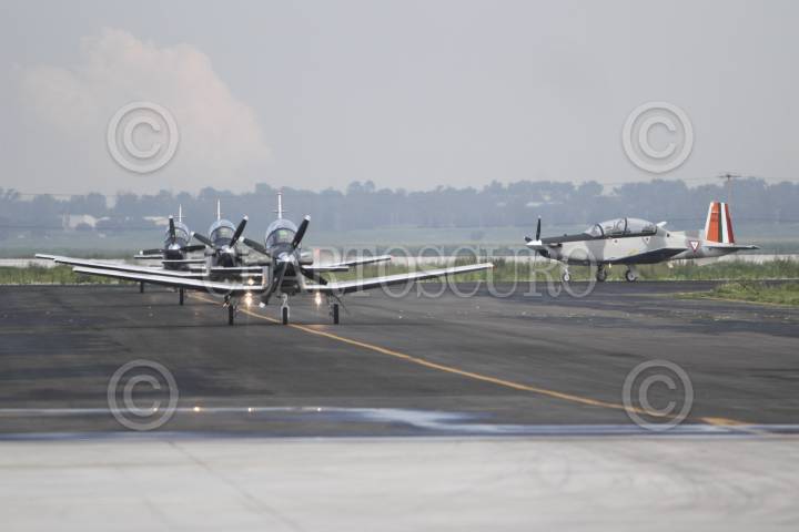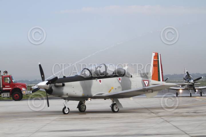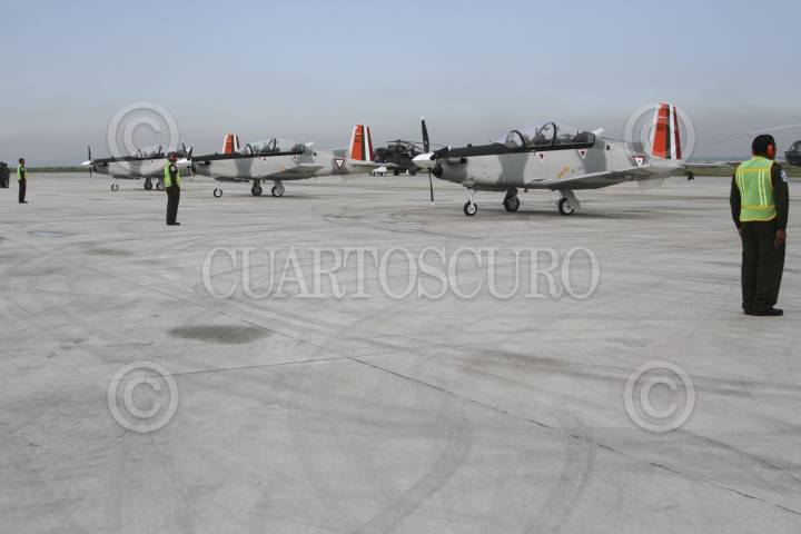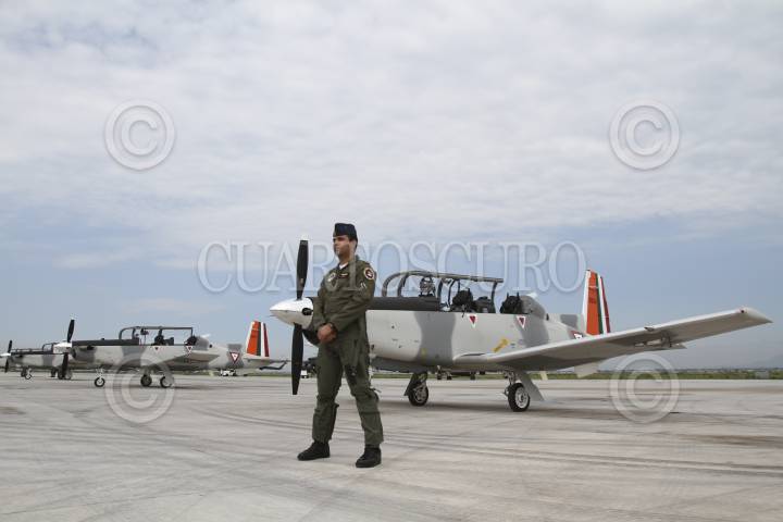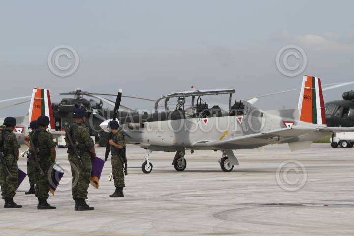 TECAMAC, ESTADO DE MÉXICO, 22AGOSTO2012.- En la Base Aérea Militar No. 1, se realizó la ceremonia de recepción de cuatro aeronaves T-6C “Texan II”, que serán utilizadas con fines tácticos, apoyo aéreo cercano, apoyo directo por el fuego, reconocimiento armado y escolta aérea, FOTO: GUILLERMO PEREA /CUARTOSCURO.COM