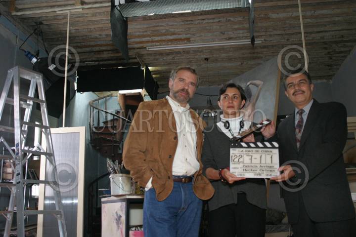 MEXICO, D.F. 03AGOSTO2005.- Sergi Mateu, protagonizta, Patricia Arriaga, directora y el representante del IMCINE, Alfredo del Valle, dieron el pizarrazo de las últimas escenas del largometraje, ¨La noa de China¨. FOTO: Sandra Perdomo/CUARTOSCURO.COM