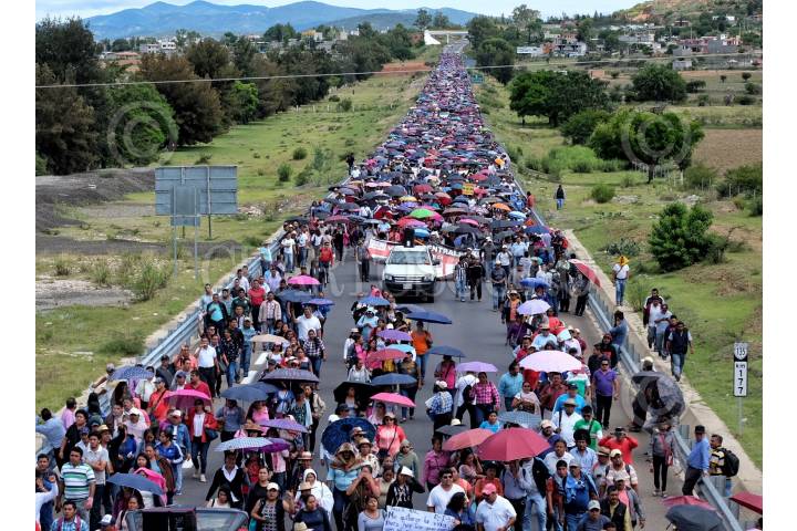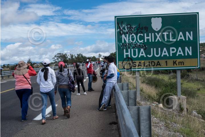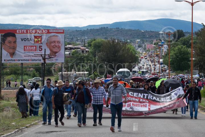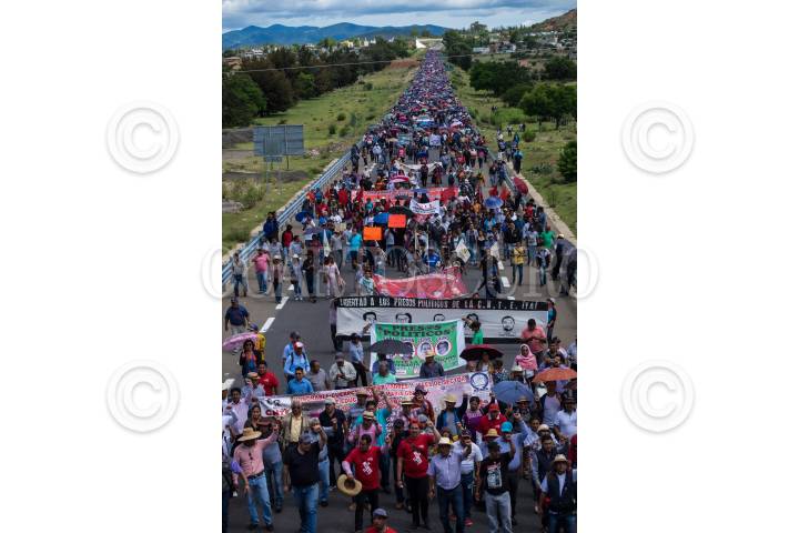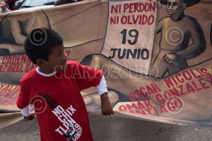 ASUNCIÓN NOCHIXTLAN, OAXACA, 19JUNIO2018.- Habitantes, familiares, dirigentes de la comisión de Victimas del 19 de junio del 2016 en Nochixtlán y maestros de la región Mixteca, de la sección 22 de la coordinadora Nacional de Trabajadores de la Educación (CNTE). Marcharon por calles principales y carretera donde hace dos años integrantes de la Policía Federal participaron en el desalojo violento en contra de profesores y padres de familias quienes bloqueaban la carretera en busca de mesas de diálogo para la abrogación de la Reforma Educativa y dónde hubo 8 asesinados y 120 heridos de bala. FOTO: ANDREA MURCIA /CUARTOSCURO.COM