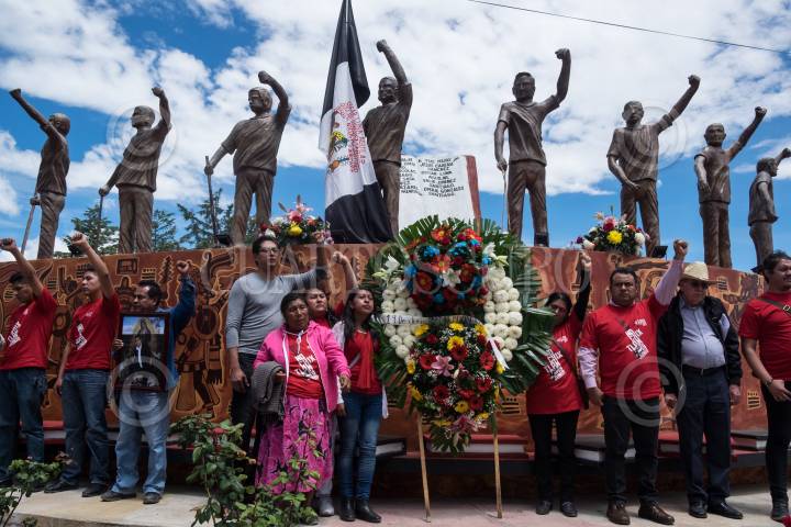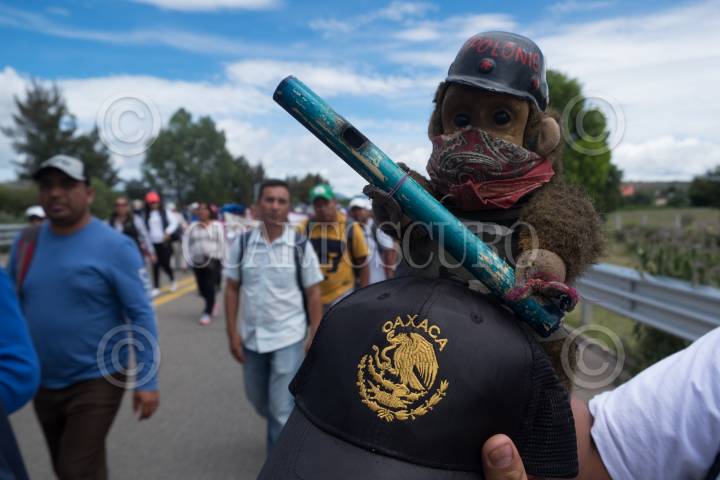 ASUNCIÓN NOCHIXTLAN, OAXACA, 19JUNIO2018.- Con motivo del segundo aniversario luctuoso de la masacre de Nochixtlan; donde integrantes de la gendarmería pertenecientes a la Secretaria de Seguridad Pública participaron en intento de desalojo en contra de profesores y padres de familias quienes bloqueaban la carretera en busca de mesas de diálogo para la abrogación de la Reforma Educativa y dónde los elementos de Gendarmería dispararon contra el contingente asesinando a 8 personas y dejando 120 heridos de bala. Miles de personas de todas partes del país acudieron a este pueblo para manifestarse en las principales calles dirigiéndose hacía el monumento de los caídos donde familiares colocaron un memorial. FOTO: ANDREA MURCIA /CUARTOSCURO.COM