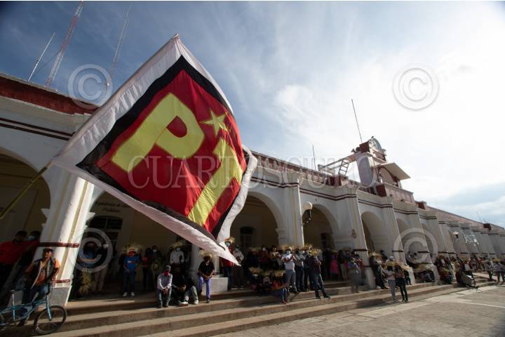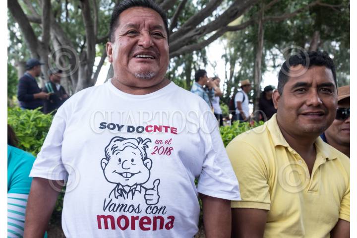 Manolo Avendaño, candidato del PT a la Presidencia Municipal de Asunción Nochitlán por el PT, cerró su campaña frente al Palacio Municipal.