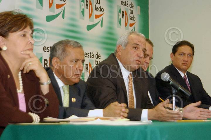 MEXICO, D.F. 29ABRIL2005.- El comité ejecutivo del Estado de Veracruz y legisladores del PRI realizaron una conferencia de prensa en el CEN del PRI. En la gráfica la senadora Noemi Guzman, diputado Jorge Uscanga José Ramón Martell, Edel Álvarez y el diputado Alejandro Montaño. FOTO:Juan Flores/CUARTOSCURO.COM