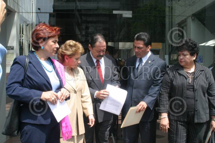 MÉXICO, D.F. 07JUNIO207.- En la Suprema Corte de Justicia de la Nación se declaró resuelta la acción de inconstitucionalidad contra las reformas a las leyes federales de Telecomunicaciones. Javier Corral, Noemí Guzmàn, Manuel Bartlet, Dulce María Sauri y Raul Ojeda a su salida del recinto. FOTO: PAOLA HIDALGO/CUARTOSCURO.COM