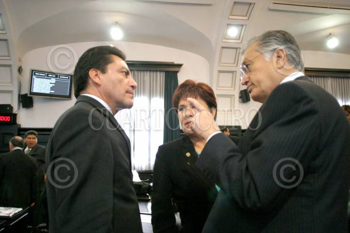 México D.F 26 Octubre 2004.- Los senadores del PRI Oscar Cantón Zetina, Noemi Guzman y Manuel Bartlett platican durante la sesión ordinaria en el senado. FOTO: Eunice Adorno/CUARTOSCURO.COM