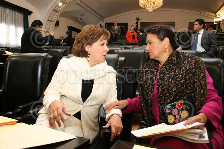 MEXICO D.F. 09FEBRERO2006.- Las senadoras del PRI Noemi Gúzman y Dulce Sauri, charlan mientras da inicio la sesión, que estuvó a punto se de ser pospuesta por falta de senadores. En la Cámara de Senadores. FOTO: Diego Gallegos/CUARTOSCURO.COM