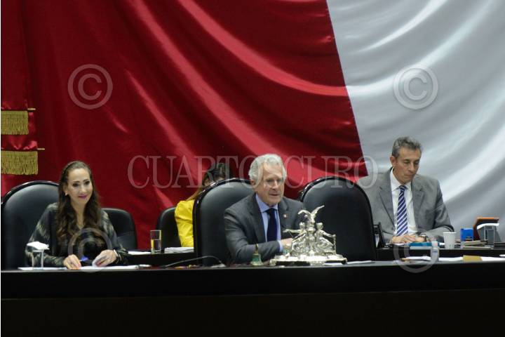 Santiago Creel, presidente de la mesa directiva, y Noemí Berenice Luna, vicepresidenta, durante la sesión ordinaria de la Cámara de Diputados en la que se realizaron comentarios relativos a la amenaza de intervención de las fuerzas armadas de Estados Unidos de América.
