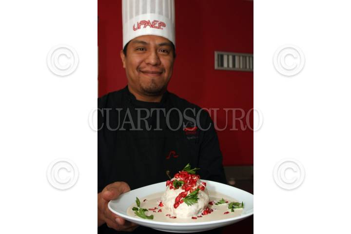 PUEBLA, PUEBLA, 19JULIO2011.- Chefs de la escuela de gastronomía de la UPAEP, mostraron el proceso de elaboración del tradicional platillo poblano "los chiles en Nogada", mismos que ya se encuentran en temporada en todos los restaurantes de la ciudad con precios desde los 80 hasta los 250 pesos. FOTO: FRANCISCO GUASCO/CUARTOSCURO.COM