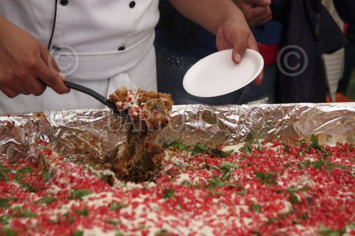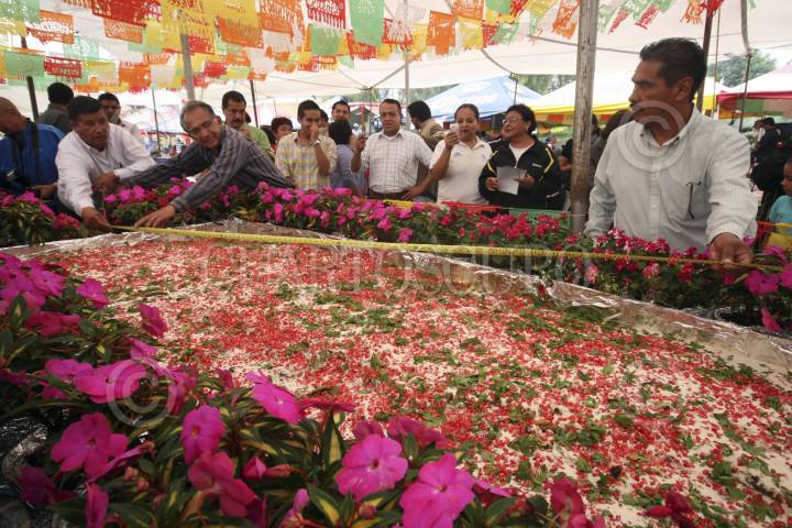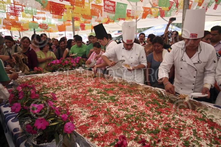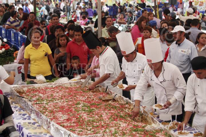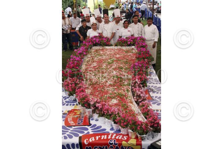 ATLIXCO, PUEBLA, 11AGOSTO2012.- Elaboración del chile en nogada mas grande del mundo en el municipio de Atlixco el cual midió 4.80 metros de largo por 1.40m de ancho con un peso de 450 kilos para servir a 3500 comensales aproximadamente. FOTO: HILDA RÍOS /CUARTOSCURO.COM