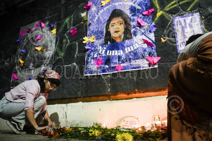 CIUDAD DE MÉXICO, 14MARZO2025.- Araceli Osorio, madre de Lesvy (víctima de feminicidio en 2017) junto a mujeres del colectivo "Las siempre vivas" colocaron una ofrenda en las inmediaciones del parque Nonoalco en homenaje de Gilda Guadalupe Pérez Rivera, localizada sin vida el pasado 8 de marzo de 2025 en Tlatelolco. Las mujeres del colectivo exigieron justicia y esclarecimiento del feminicidio. FOTO: MARIO JASSO/CUARTOSCURO.COM