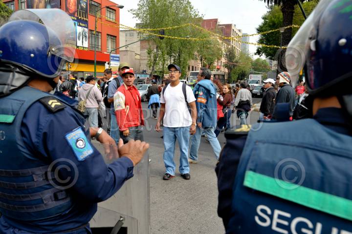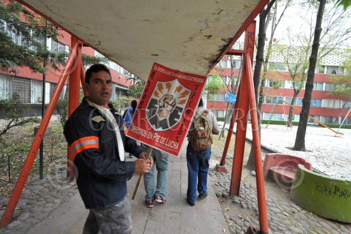 MÉXICO, D.F., 06ENERO2010.- Integrantes del ex Sindicato Mexicano de Electricistas (SME), marcharon desde sus instalaciones ubicadas en la avenida de Insurgentes a la altura de Antonio Caso a la planta eléctrica de Nonoalco provocando cortes en la circulación. FOTO: LUIS CARBAYO/CUARTOSCURO.COM