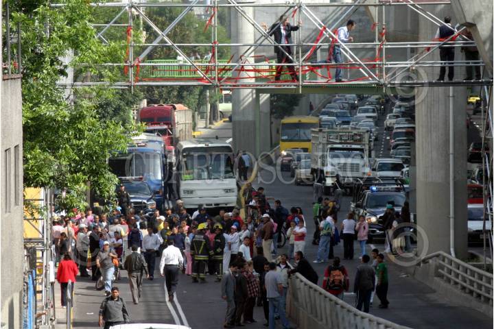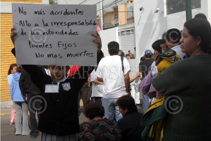 MÉXICO, D.F. 16MARZO2007.- Vecinos de la colonia Santa Maria Nonoalco bloquearon por algunos minutos el periferico debido a un improvisado puente peatonal donde esta mañana cayeron sobre el arrollo vehicular dos jovenes, quedando lesionados. FOTO: PEDRO MARRUFO/CUARTOSCURO.COM