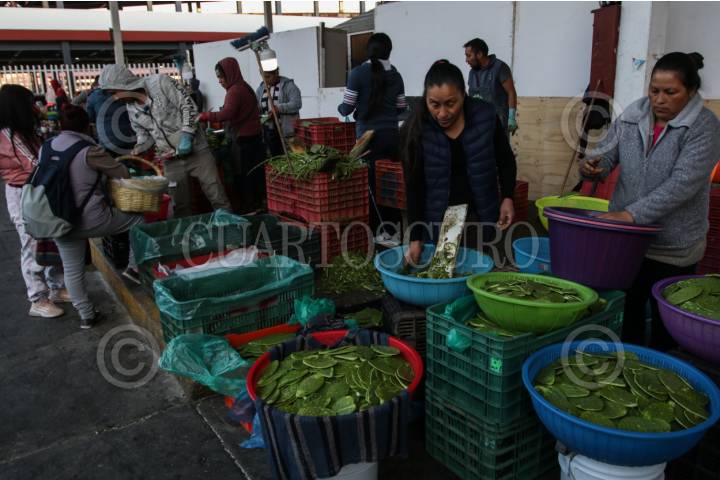 CIUDAD DE MÉXICO, 27MARZO2024.- Desde temprana hora y en su mayoría mujeres el Centro de Acopio de Nopal se encuentra lleno de “diablitos” cargadores que llevan los nopales de cientos de personas que acuden a comprar esta materia prima tan característica de Milpa Alta. FOTO: ANDREA MURCIA /CUARTOSCURO.COM