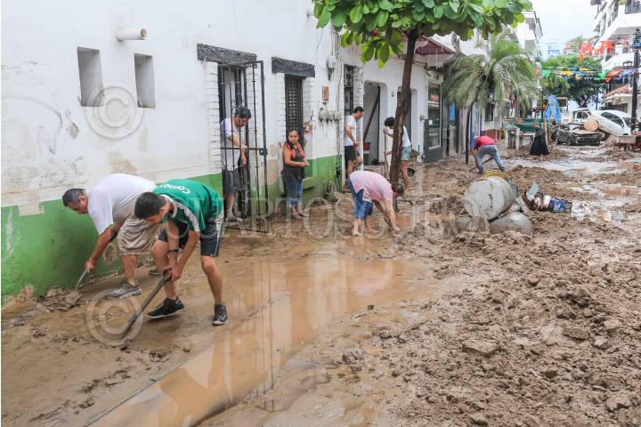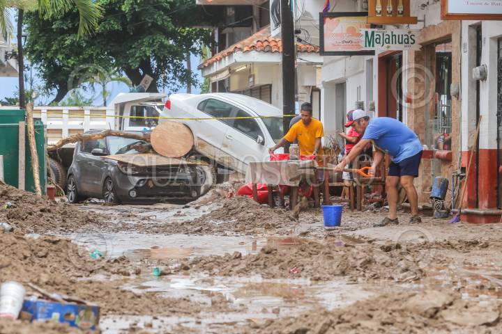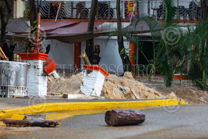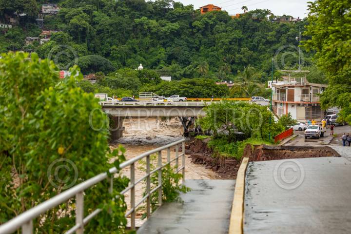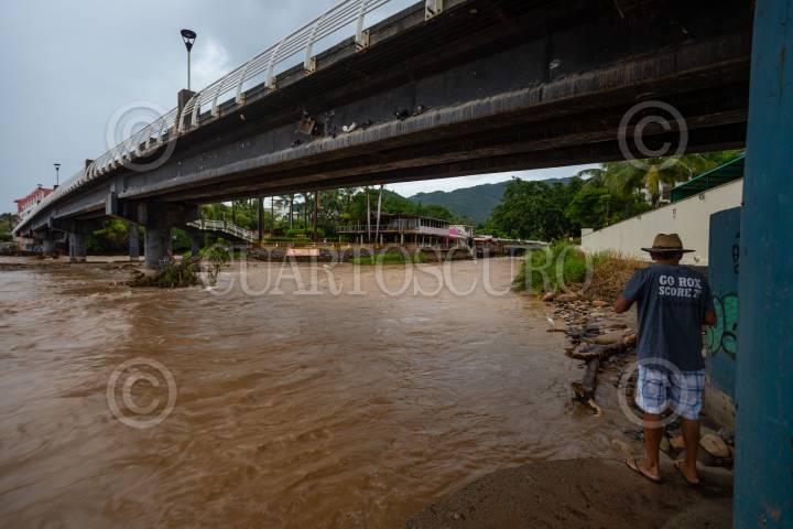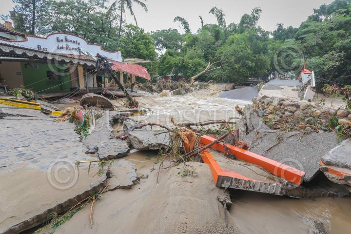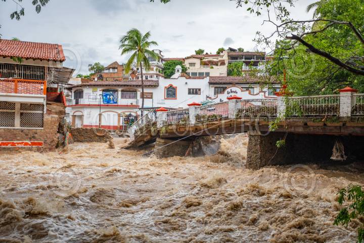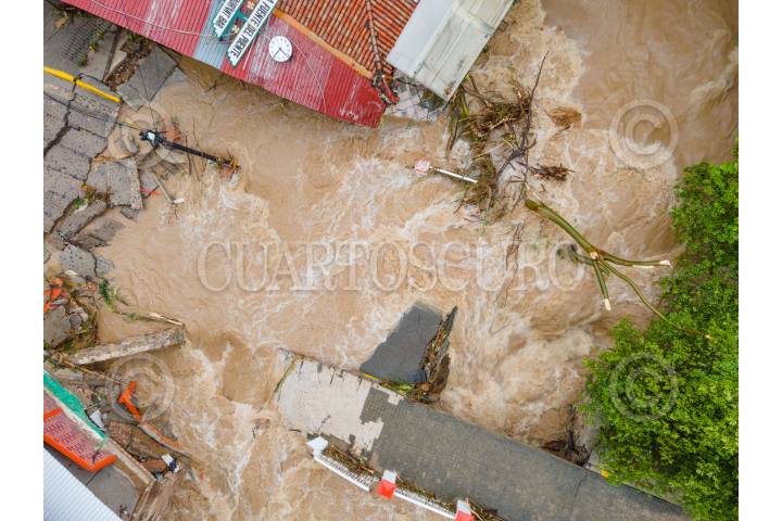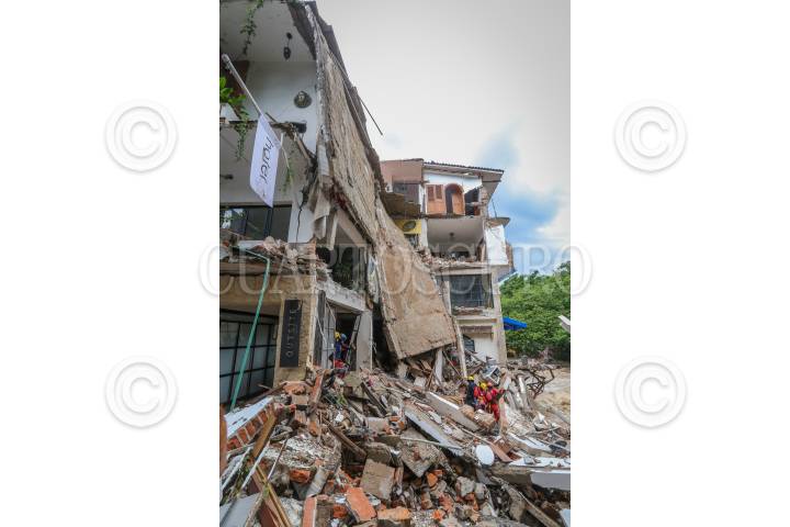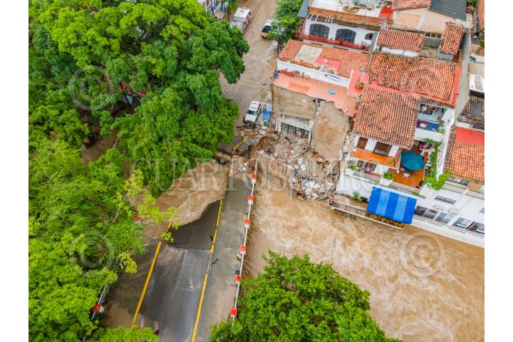 Las intensas lluvias que provocó la tormenta tropical "Nora" provocaron el desbordamiento del Río Cuale. Un ciudadano español murió cuando el hotel en el que se hospedaba se derrumbo parcialmente. FOTO: AGENCIA PERSPECTIVA/CUARTOSCURO.COM